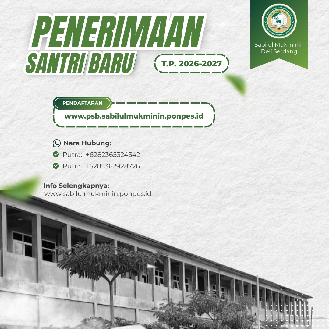 Pondok Pesantren Sabilul Mukminin Deli Serdang membuka Penerimaan Santri Baru, T.P. 2026-2027. Periode Pendaftaran🗓Gel. I: 01 November 2025 – 08 Januari 2026💵Biaya Pendaftaran: Rp 200.000 🗓Gel. II: 13 Januari – 30 April 2026💵Biaya pendaftaran: Rp 250.000 Link Pendaftaran:https://psb.sabilulmukminin.ponpes.id Panduan Pendaftaran:https://sabilulmukminin.ponpes.id/panduan-psb …